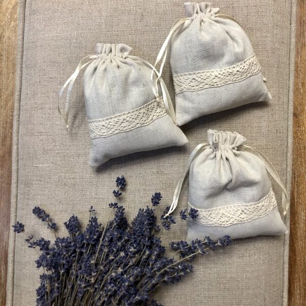 Woreczek len z koronką